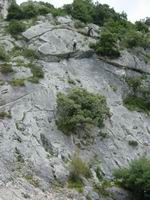 Junge hübsche Spanierin (leider schlecht zu erkennen) aus San Sebastian in einer leichteren Route links der Höhle. Den Namen habe ich
