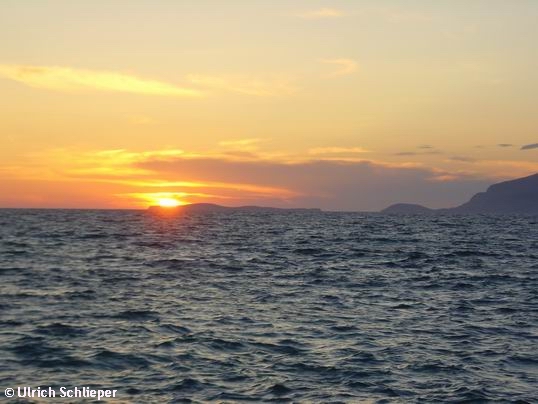 Blick vom Hafen Mastichari auf Kos nach Kalymnos. Wir warten auf die Fähre.