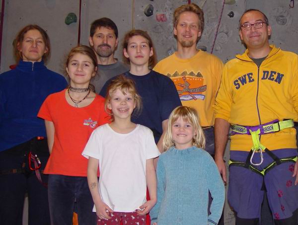 Das Betreuerteam des Familienkletterns mit einem Teil des Nachwuchs. Zuerst die Alten, von links nach rechts bzw. Ladys first : Susanne und Lothar Fuchs, Uli Schlieper, Martin Arnold.