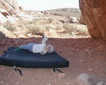 “Zum Bouldern mitkommen ist ganz toll! Aber hoffentlich fällt Papa nicht wieder genau auf mich drauf.”
