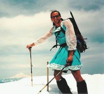 “Nach der Gründung der neuen Alpenvereinssektion für Schwule konnte Detlef endlich in seinem bevorzugten Outfit in die Berge gehen.”