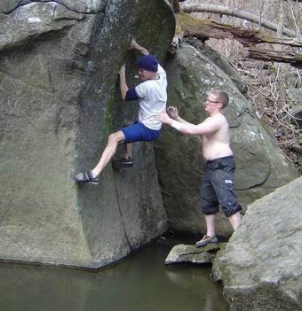 “Das Crashpad war gleich weg geschwommen, der Ladeplatz nun etwas ungemütlich und der Spotter übergewichtig. Ob das ein guter Tag beim Bouldern würde?”